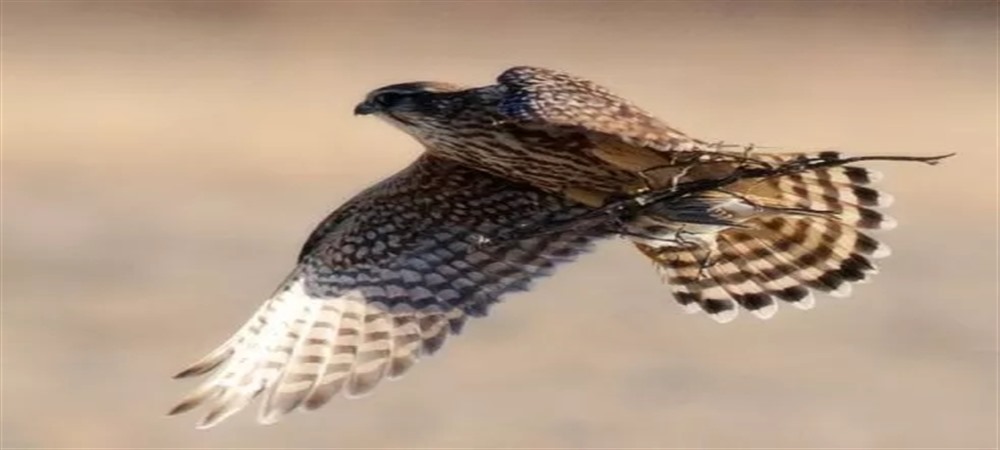 “我望向西方,一眼就认出了他:游隼在远方农舍的雪松上空移动,在秃鼻乌鸦的黑雾里闪闪发光,随金斑鸻群的飘带游荡摇曳。一团黑压压的积雨云正从北方逼近,他在其映衬下更显光耀,周身仿佛环绕着一圈细薄的金色光轮。他滑翔越过麦茬地,一大波麻雀慌忙扑入树篱。一瞬间,鹰的翅膀在追捕中放肆狂舞,它高高举起,灵活拍扇,一连串疯狂的振翼筑成一弯鹿角的形状,凝固于我记忆之中。然后,他平静地往河边飞去了。”(97)