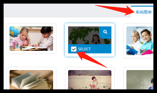 设置方法:可以选择我们已经内置好的图片→【系统图库】。也可以自己上传图片→【自定义图库】。