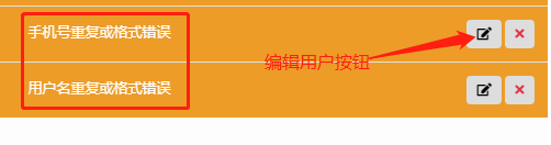 然后点击【上传数据文件】,上传数据模板文件。系统会把用户名和对应的手机号列出来。如果用户名和手机号重复,用户名所在行是黄色背景,同时系统会有提示,点击【编辑用户】按钮按照提示修改,修改完成后,点击右上方的【批量导入用户】按钮就完成了所有操作。