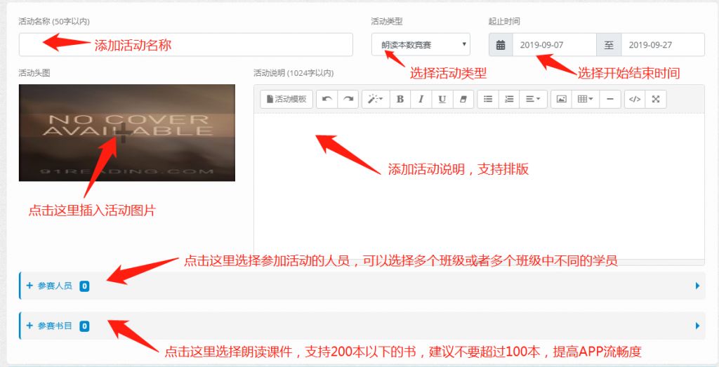 操作跟创建朗读活动类似。需要添加参赛书目。