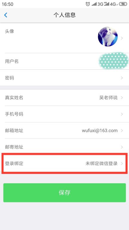 打开APP,点击右下角【我的】,然后点击左上角头像进入【个人信息】页面。如下图: